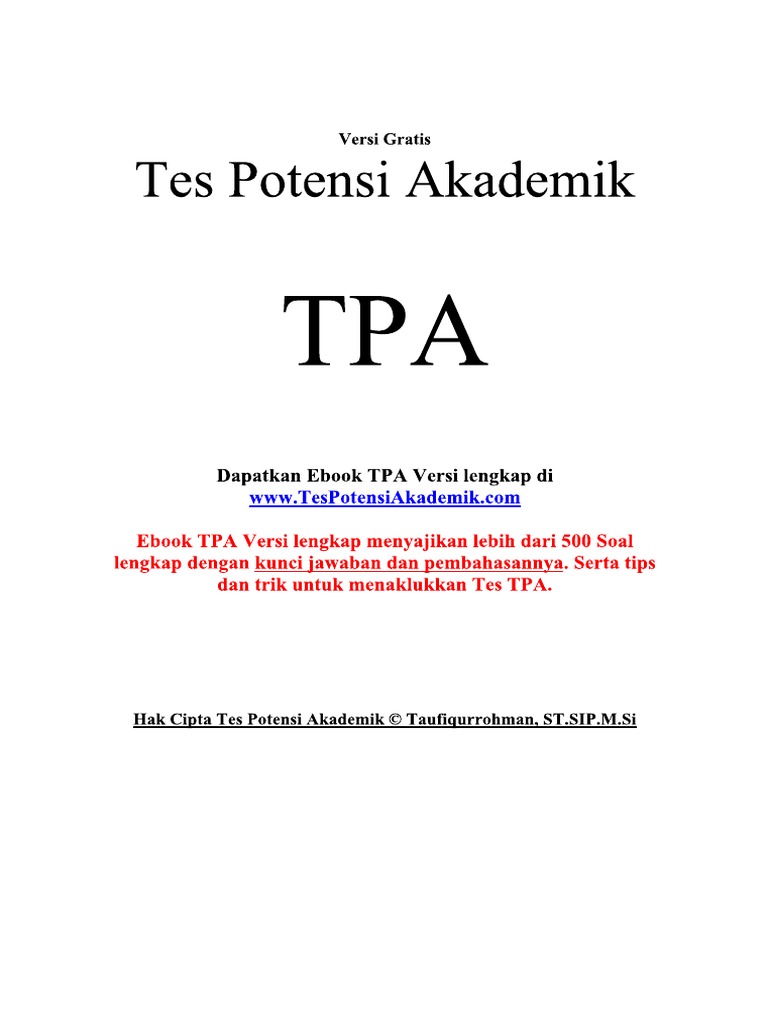 TES POTENSI AKADEMIK-GALANG_upload.pdf (Della Love) Tes Potensi Akademik TPA Download Gratis. contoh soal TPAFull description. Tes Potensi Akademik APK we provide on this page is original, direct fetch from Google Store. Tes Potensi Akademik identik dengan tes GRE atau Graduate.